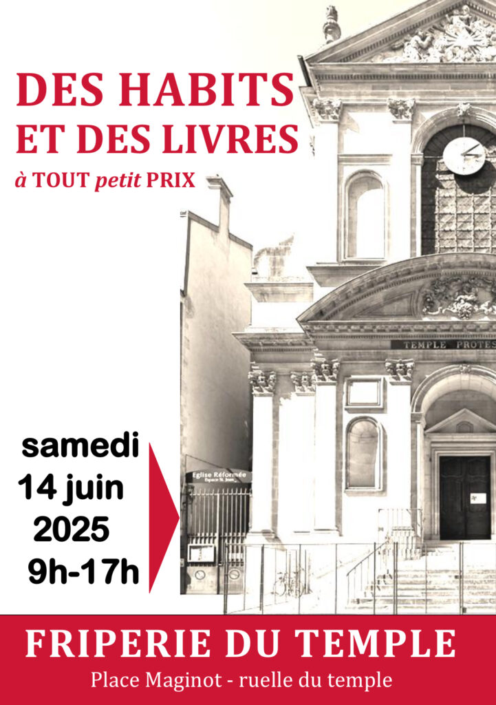 Friperie du temple de Nancy (place Maginot) de 9h à 17h ce samedi 14 juin : venez y faire un tour, vous y trouverez sûrement quelque chose !