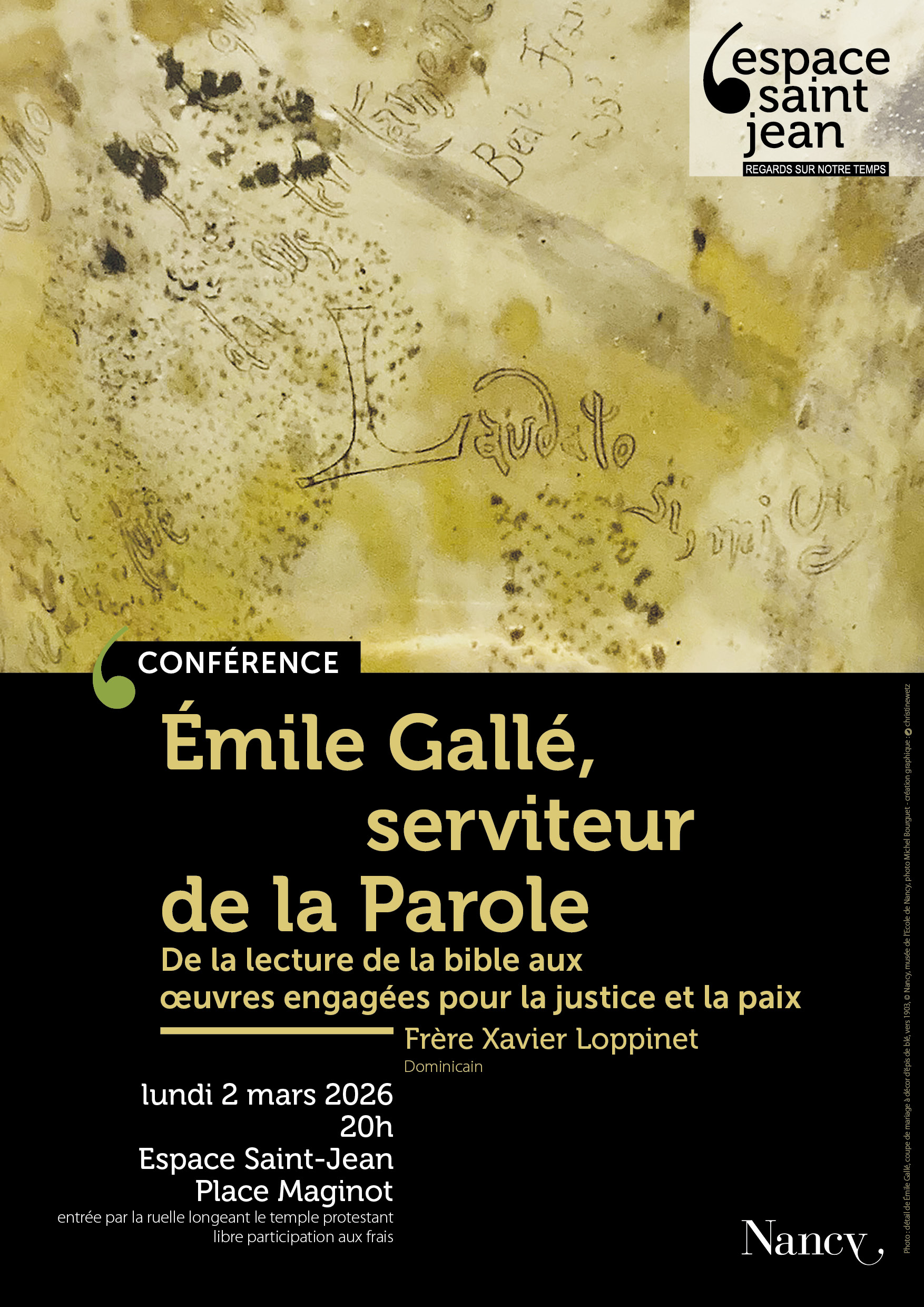 Une fois par mois, un spécialiste nous propose son regard sur une question culturelle ou d’actualité. Cela se passe en soirée, dans l’espace Saint-Jean à Nancy, juste à côté du temple. Le programme est dans l’article !